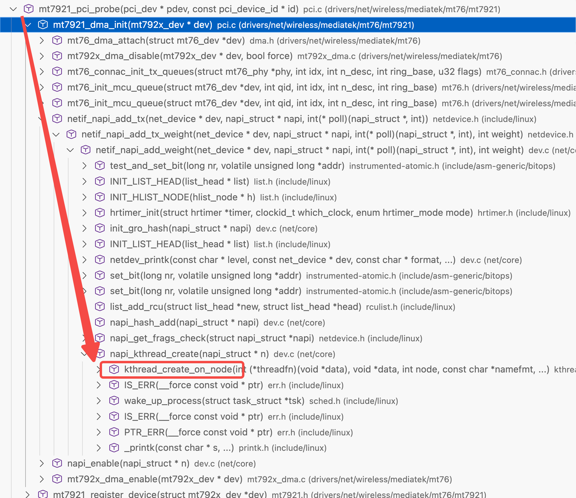 kernel thread通过thread_struct调度,napi本身封装了thread_struct,内部有kernel thread