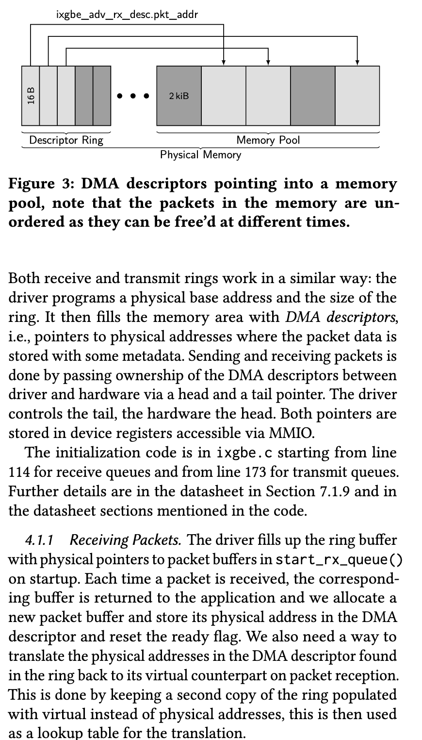 虽说一直提到DMA ring buffer,但DMA并不一定需要ring buffer。DMA提供双方互相访问的内存。DMA对双方在内存中以何种数据结构进行通讯没有强制要求,你可以用DMA内存实现ring buffer,将DMA address写到硬件。也可以用其他结构。